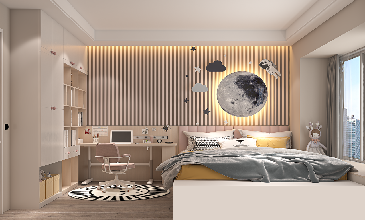 在惯性思维里,儿童房只需在次卧放张床,然后加点童趣元素,最后规划好衣柜、书架就能一劳永逸。